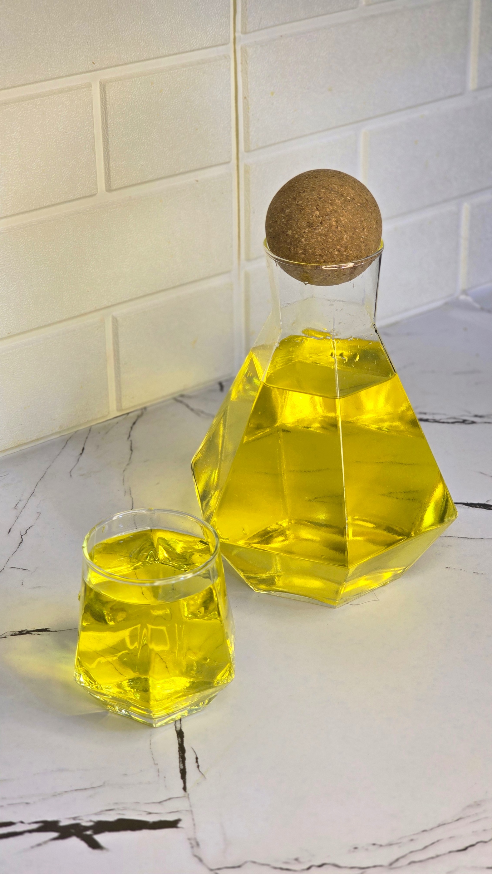 این ست پارچ و لیوان شیشهای درب چوبپنبهای علاوه بر کیفیت بالا، جلوهای خاص به میز پذیرایی شما میدهد. طراحی چندضلعی لیوانها و بدنه خاص پارچ باعث میشود نسبت به مدلهای ساده بازار متفاوت و چشمنواز باشد.