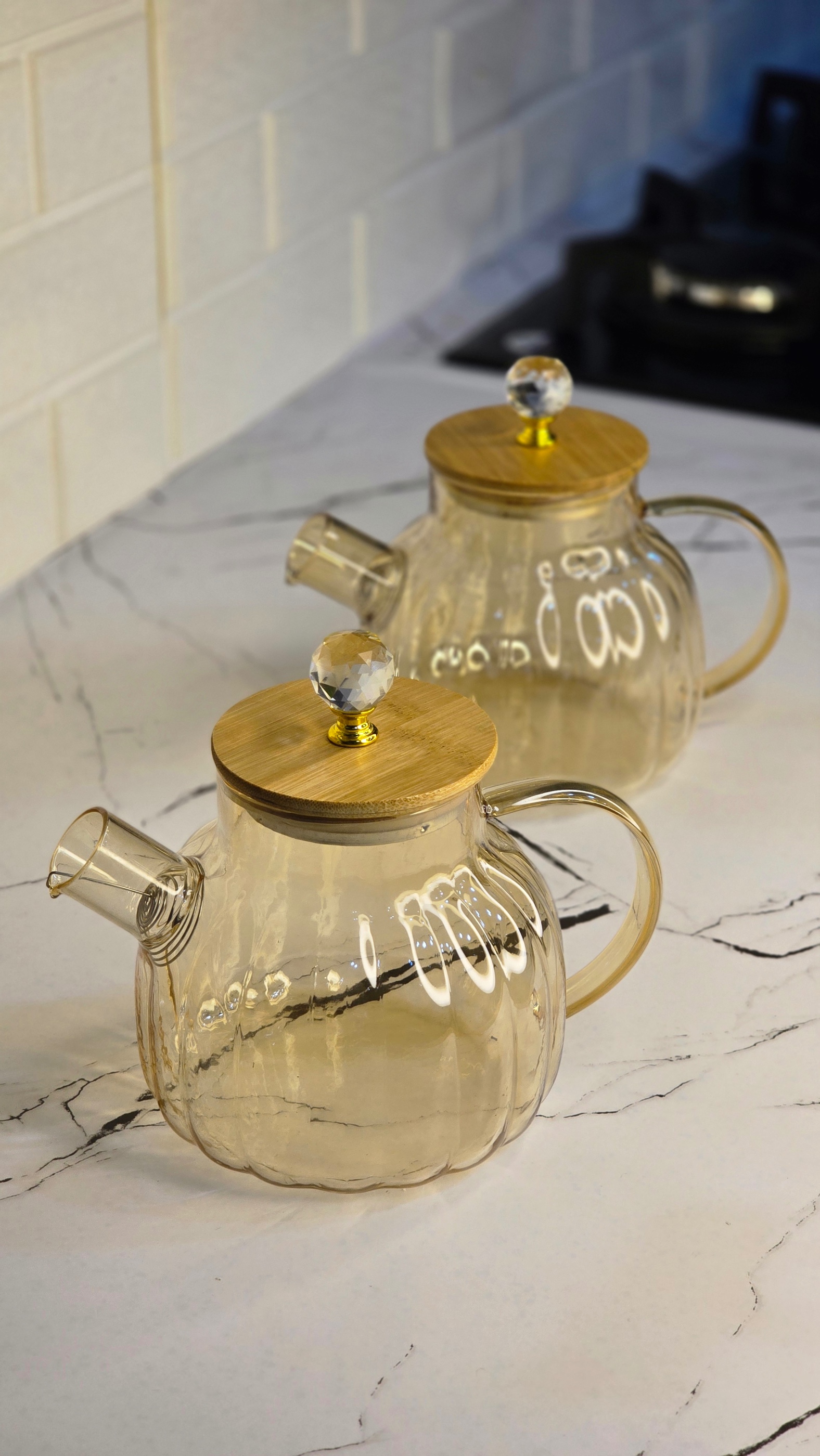 اگر به دنبال یک قوری پیرکس شیک و مقاوم برای دم کردن چای و دمنوش هستید، این مدل با طراحی خاص و مدرن، انتخابی عالی برای آشپزخانههای امروزی است. بدنه شیشهای شفاف با رنگ دودی ملایم در کنار درب بامبو و دستگیره ظریف، جلوهای لوکس و متفاوت به میز پذیرایی شما میدهد.