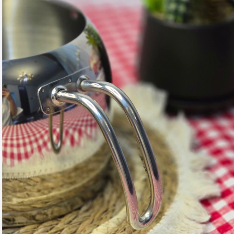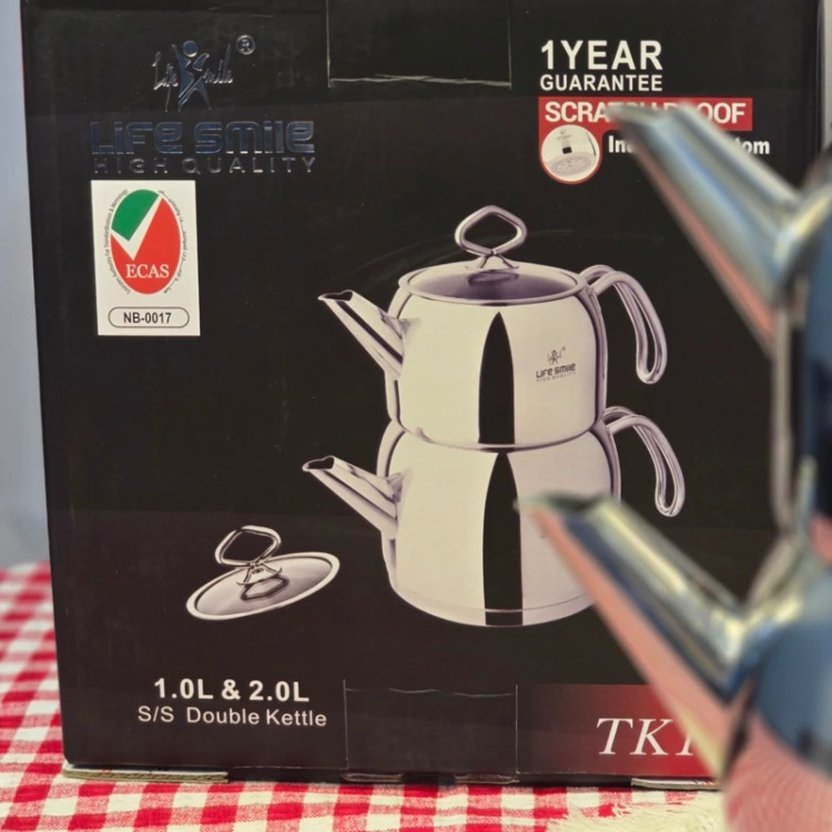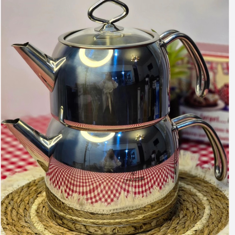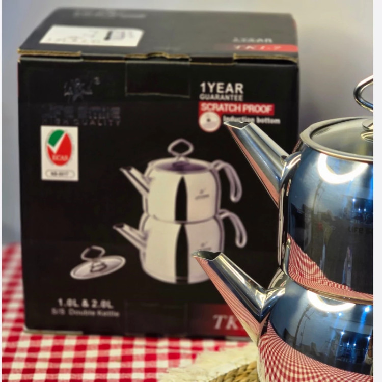 مشخصات محصول: • جنس بدنه: استیل ضدزنگ (Stainless Steel) براق • ظرفیت: • قوری بالا: 1 لیتر • کتری پایین: 2 لیتر • ویژگیها: • بدنه ضدخش (Scratch Proof) • کف چدن با خاصیت Induction Bottom (قابل استفاده روی اجاقهای القایی و معمولی) • دستههای استیل مقاوم در برابر حرارت • طراحی دوجداره برای دمآوری بهتر چای • برند: Life Smile (لایف اسمایل) • گارانتی: 1 سال ضمانت • کشور سازنده: (احتمالاً ترکیه یا چین، بسته به سری تولید، چون برند Life Smile ترکیهای است اما تولیداتش در چین هم صورت میگیرد) کاربرد: این ست برای تهیه و دمکردن چای و دمنوش بسیار مناسب است. کتری بزرگتر برای جوش آوردن آب استفاده میشود و قوری کوچکتر برای دم کردن چای یا دمنوش روی بخار آب قرار میگیرد. مزایا: • ظاهر شیک و مدرن با استیل براق • مقاومت بالا در برابر خط و خش • قابلیت استفاده روی انواع اجاقها (گازی، برقی، القایی) • ظرفیت مناسب برای خانواده 8تا12 نفره