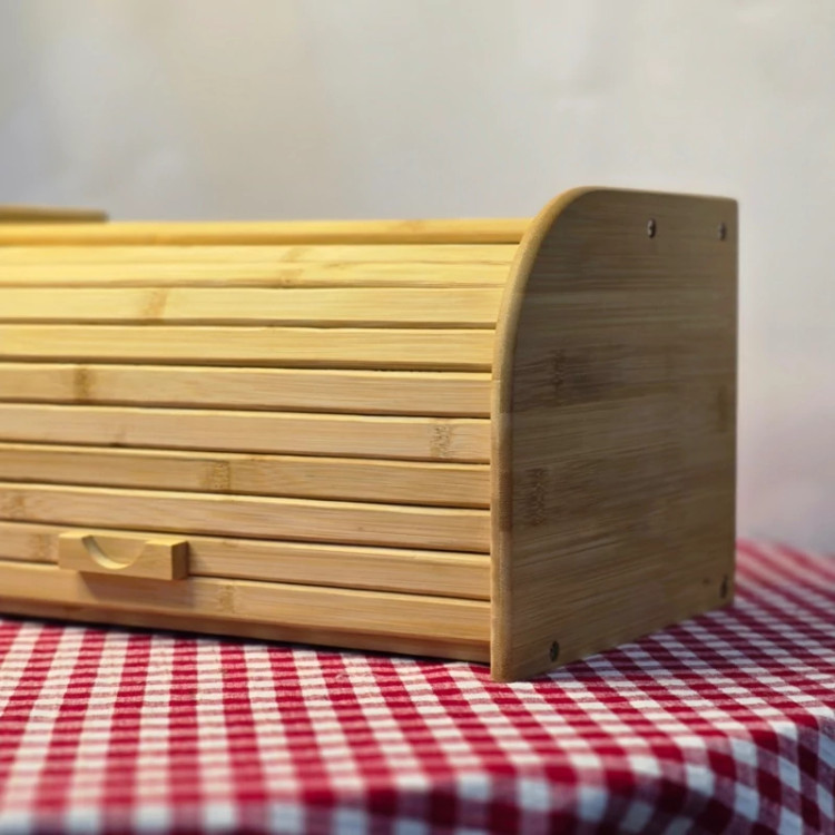 این محصول یک جعبه نان بامبو (Bread Box) است که برای نگهداری انواع نان و شیرینی در آشپزخانه طراحی شده. مشخصات محصول: • جنس: بامبو طبیعی (ضد رطوبت و مقاوم در برابر باکتری) • ابعاد تقریبی: 30 تا 40 سانتیمتر طول، 20 تا 25 سانتیمتر عرض، 15 تا 20 سانتیمتر ارتفاع (بسته به مدل) • طراحی: • درب کشویی (رولتاپ) برای باز و بسته شدن آسان • دسته کوچک برای راحتی در استفاده • تهویه مناسب برای جلوگیری از کپکزدگی نان • رنگ: چوبی طبیعی (بامبو روشن) • کاربرد: مناسب برای نگهداری نان، کیک، شیرینی و حتی بیسکویت، با حفظ تازگی و جلوگیری از خشکشدن سریع مزایا: • ساختهشده از بامبو سالم و دوستدار محیطزیست • طراحی شیک و مدرن، مناسب برای دکور آشپزخانه • حفظ تازگی نان و جلوگیری از تماس مستقیم با گرد و غبار • سبک، مقاوم و بهراحتی قابل شستشو این جعبه نان برای افرادی که به مرتب بودن آشپزخانه و نگهداری سالم مواد غذایی اهمیت میدهند، انتخابی کاربردی و زیباست.