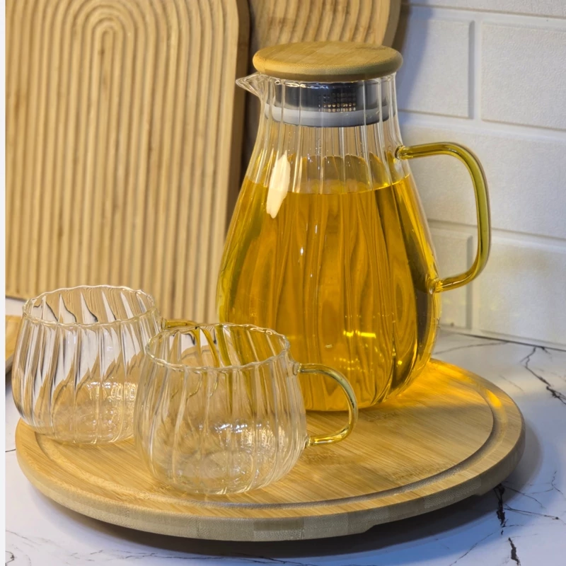 ست پارچ و لیوان شیشه ایی با درب بامبو