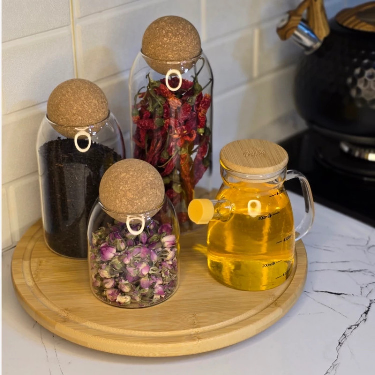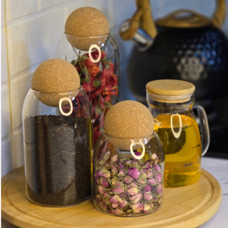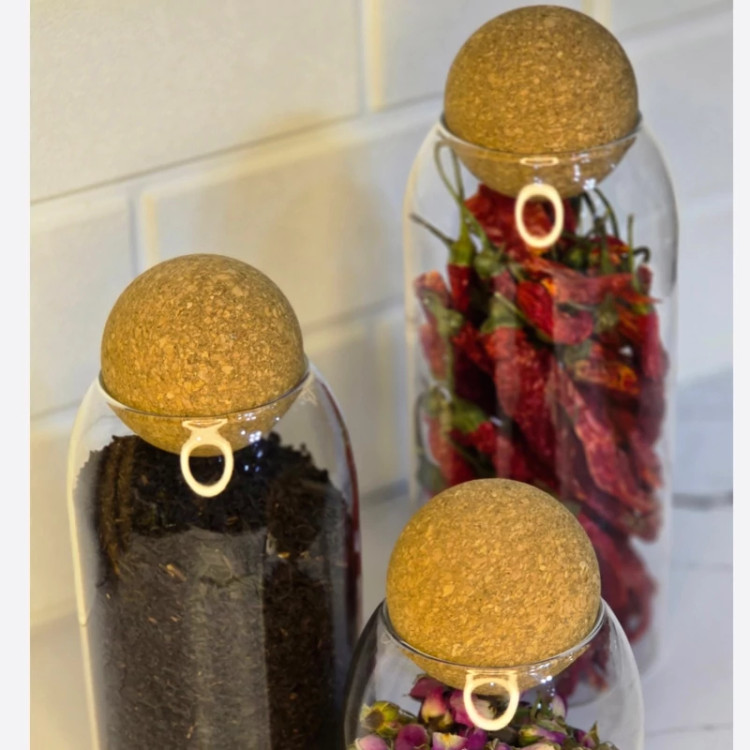 شیشههای نگهداری دکوراتیو با درب چوب پنبهای این ست شیشههای شفاف با طراحی مینیمال و درب کروی چوب پنبهای، انتخابی ایدهآل برای نظم و زیبایی آشپزخانه شما هستند. مشخصات برجسته: جنس بدنه: شیشه شفاف و ضخیم با قابلیت دید عالی محتویات. درب: چوب پنبه طبیعی با طراحی کروی شیک و مدرن، به عنوان درپوش و المان دکوراتیو عمل میکند. مناسب برای: نگهداری انواع ادویهجات، چای، قهوه، فلفل خشک، و گیاهان دارویی. مزایای اصلی: 1. حفظ تازگی: درب چوب پنبهای کمک میکند تا عطر و طعم مواد غذایی خشک با جلوگیری از نفوذ رطوبت و هوا، برای مدت طولانیتری حفظ شود. 2. زیبایی دکوراتیو: طراحی خاص این شیشهها (ترکیب شیشه و چوب پنبه) ظاهری شیک، گرم و طبیعی به کانتر یا کابینتهای شما میبخشد. 3. سلامت و بهداشت: شیشه جنسی بهداشتی است که بو و رنگ مواد را جذب نمیکند و تمیز کردن آن بسیار آسان است.