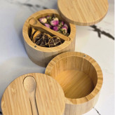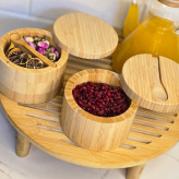 مشخصات محصول: • جنس: ساخته شده از چوب طبیعی بامبو (کاملاً سالم و بهداشتی) • دربها: دارای طراحی فیت شده برای جلوگیری از ورود گرد و غبار • قاشق: همراه با قاشق چوبی کوچک برای هر ظرف • طراحی: گرد و کلاسیک، با رنگ طبیعی بامبو • ابعاد: مناسب برای میز آشپزخانه و کابینت (ابعاد تقریبی هر ظرف: ارتفاع 7–8 سانتیمتر) • کاربرد: نگهداری ادویهجات، چای خشک، دمنوش، آجیل، زرشک، و سایر مواد خوراکی خشک ⸻ مزایا: • ✅ ساخته شده از بامبو طبیعی: سالم، مقاوم و سازگار با محیط زیست • ✅ طراحی شیک و مدرن: قابل استفاده به عنوان اکسسوری دکوراسیون آشپزخانه • ✅ کاربرد چندمنظوره: مناسب برای ادویهجات، دمنوشها، خشکبار و حتی قند و شکر • ✅ دارای قاشق اختصاصی: برای هر ظرف، جلوگیری از آلودگی و استفاده راحت • ✅ پایهدار و مرتبکننده: ظروف روی استند چوبی پایهدار قرار میگیرند و باعث نظم بیشتر میشوند • ✅ هدیهای زیبا و خاص: مناسب برای جهیزیه، هدیه منزل جدید یا علاقهمندان به وسایل چوبی