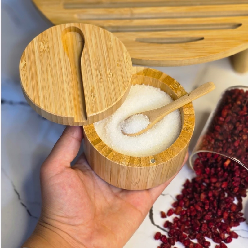 مشخصات محصول: • جنس: ساخته شده از چوب طبیعی بامبو (کاملاً سالم و بهداشتی) • دربها: دارای طراحی فیت شده برای جلوگیری از ورود گرد و غبار • قاشق: همراه با قاشق چوبی کوچک برای هر ظرف • طراحی: گرد و کلاسیک، با رنگ طبیعی بامبو • ابعاد: مناسب برای میز آشپزخانه و کابینت (ابعاد تقریبی هر ظرف: ارتفاع 7–8 سانتیمتر) • کاربرد: نگهداری ادویهجات، چای خشک، دمنوش، آجیل، زرشک، و سایر مواد خوراکی خشک ⸻ مزایا: • ✅ ساخته شده از بامبو طبیعی: سالم، مقاوم و سازگار با محیط زیست • ✅ طراحی شیک و مدرن: قابل استفاده به عنوان اکسسوری دکوراسیون آشپزخانه • ✅ کاربرد چندمنظوره: مناسب برای ادویهجات، دمنوشها، خشکبار و حتی قند و شکر • ✅ دارای قاشق اختصاصی: برای هر ظرف، جلوگیری از آلودگی و استفاده راحت • ✅ پایهدار و مرتبکننده: ظروف روی استند چوبی پایهدار قرار میگیرند و باعث نظم بیشتر میشوند • ✅ هدیهای زیبا و خاص: مناسب برای جهیزیه، هدیه منزل جدید یا علاقهمندان به وسایل چوبی