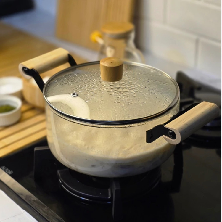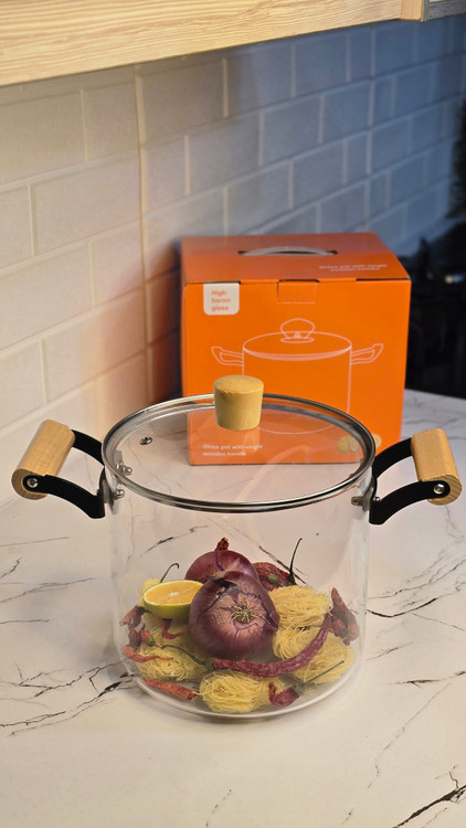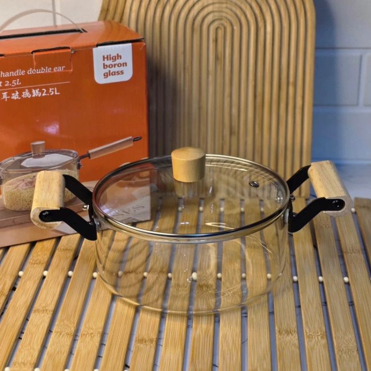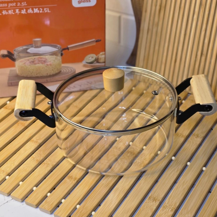 مشخصات محصول: • جنس بدنه: شیشه مقاوم بوروسیلیکات (High Boron Glass) • ظرفیت: 2/5,3/5,5/5 لیتر(مناسب برای خانوادههای کوچک و متوسط) • مقاوم در برابر حرارت: قابل استفاده روی شعله گاز، اجاق برقی و اجاق القایی • درب: شیشهای شفاف همراه با دستگیره چوبی • دستهها: دستههای مقاوم با روکش چوب طبیعی برای حمل آسان و ایمن • ظاهر: طراحی شفاف برای مشاهده روند پخت غذا بدون نیاز به باز کردن درب • ابعاد: متناسب برای پخت انواع غذاها مانند سوپ، خوراک، ماکارونی و خورش ⸻ مزایا: • ✅ شیشه مقاوم حرارت: تحمل دماهای بالا و تغییرات ناگهانی دما • ✅ طراحی شفاف: امکان مشاهده غذا در حین پخت بدون نیاز به برداشتن درب • ✅ ظاهری شیک و مدرن: مناسب برای سرو مستقیم روی میز غذا • ✅ بهداشتی و سالم: بدون مواد شیمیایی مضر، مناسب برای پخت و نگهداری غذا • ✅ ظرفیت کاربردی:2/5,3/5,5/5 لیتر لیتری، مناسب برای خانوادهها و وعدههای روزانه • ✅ دستههای چوبی مقاوم: عایق حرارت و راحت در دست گرفتن • ✅ چند منظوره: قابل استفاده برای پخت انواع غذاهای آبکی، خورش، سوپ و حتی تهیه دمنوشهای بزرگ