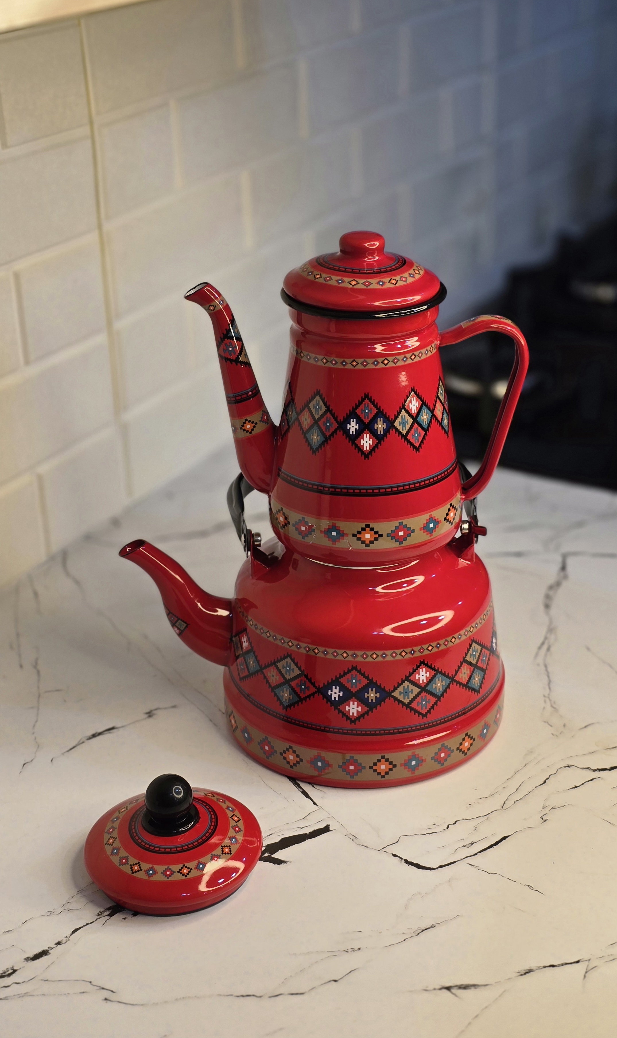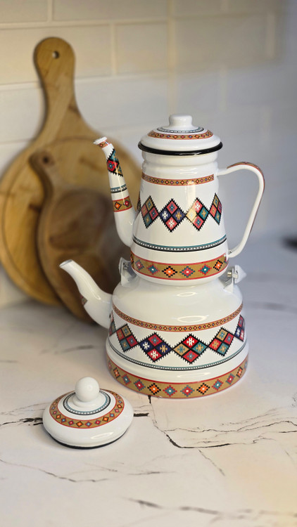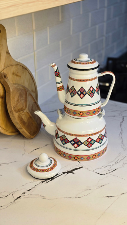 کتری و قوری لعابی طرح سنتی، ترکیبی از اصالت و زیبایی است که آشپزخانهتان را به فضایی گرم و دلنشین تبدیل میکند. طراحی چشمنواز با نقو