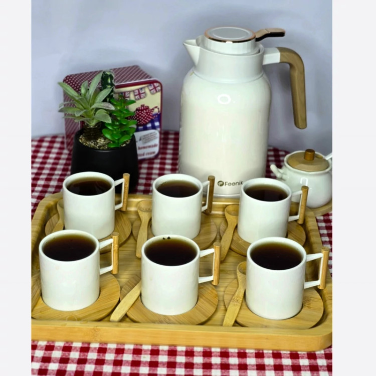 - تعداد اقلام: ۶ عدد لیوان + ۶ عدد زیرلیوانی بامبو + ۱ عدد سینی بامبو + ۱ عدد فلاسک