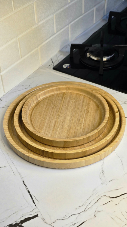 سینی چوبی گرد بامبو (ست 3 عددی)