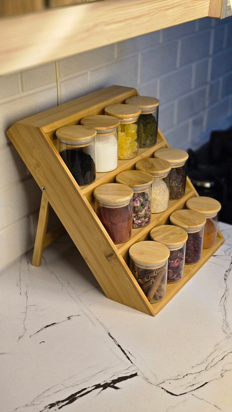 این پاسماوری شیک و کاربردی، ترکیبی از طراحی مینیمال و کیفیت ساخت بالا است. استند این محصول از چوب بامبو طبیعی ساخته شده و با زاویهای استاندارد طراحی شده است تا دسترسی به ادویهها و مواد خشک شما را آسانتر کند. شیشهها از جنس شیشه شفاف و ضخیم بوده و دربهای چوبی بامبو با واشر آببندی، محتوای داخل ظرف را تازه و معطر نگه میدارند. این محصول برای استفاده در آشپزخانههای مدرن، کافهها، رستورانها و هر فضایی که نیاز به نظم و زیبایی دارد، گزینهای ایدهآل است.