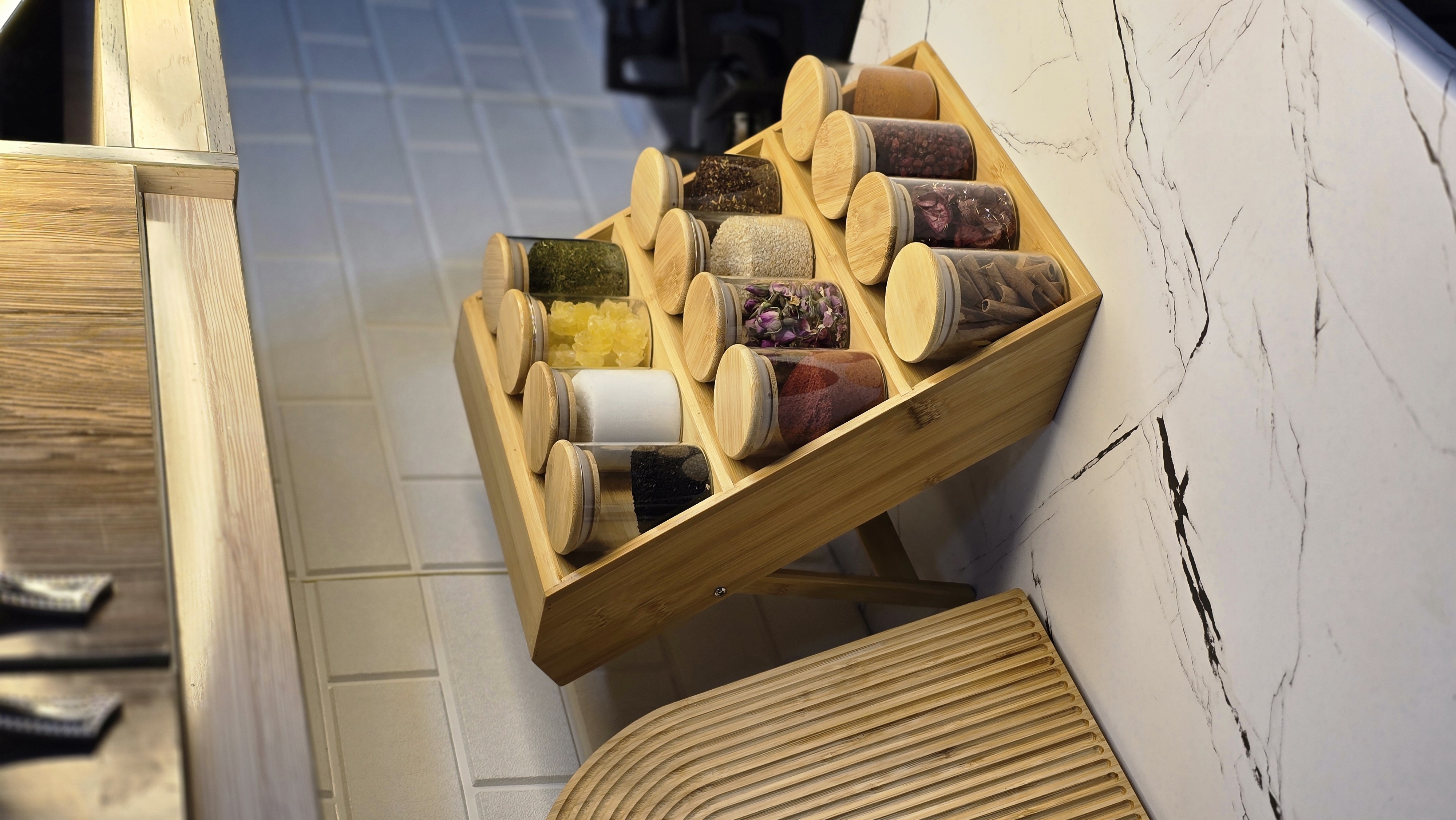 این پاسماوری شیک و کاربردی، ترکیبی از طراحی مینیمال و کیفیت ساخت بالا است. استند این محصول از چوب بامبو طبیعی ساخته شده و با زاویهای استاندارد طراحی شده است تا دسترسی به ادویهها و مواد خشک شما را آسانتر کند. شیشهها از جنس شیشه شفاف و ضخیم بوده و دربهای چوبی بامبو با واشر آببندی، محتوای داخل ظرف را تازه و معطر نگه میدارند. این محصول برای استفاده در آشپزخانههای مدرن، کافهها، رستورانها و هر فضایی که نیاز به نظم و زیبایی دارد، گزینهای ایدهآل است.