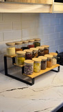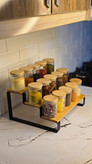 پاسماوری سهطبقهی بامبو، یک استند کاربردی و شیک برای نظمدهی به ادویهها، حبوبات، دمنوشها و مواد مصرفی روزانهی آشپزخانه است. طراحی پلهای این مدل باعث میشود تمام ظروف در دیدرس باشند و دسترسی به آنها بسیار راحتتر شود. ترکیب صفحات بامبو با پایهی فلزی مقاوم، علاوه بر استحکام بالا، جلوهای مدرن و هماهنگ با هر نوع دکور آشپزخانه ایجاد میکند.