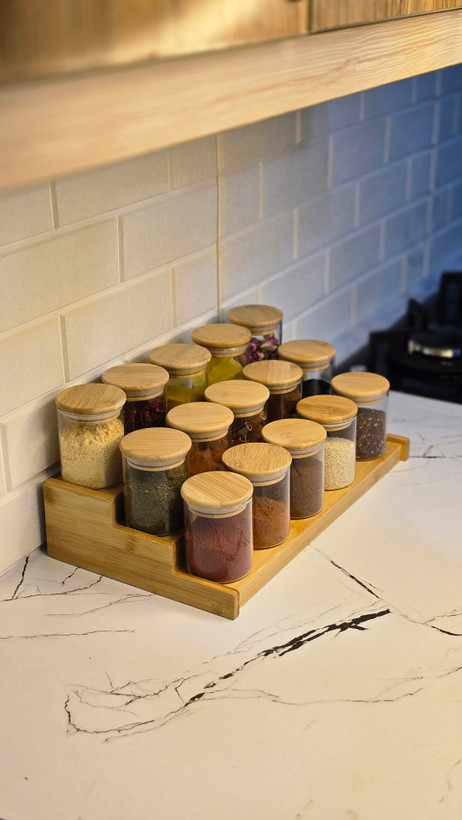 این ست پاسماوری شیک و کاربردی، انتخابی ایدهآل برای نظمدهی به ادویهها، حبوبات و مواد مصرفی آشپزخانه است. طراحی مینیمال و مدرن آن، فضای آشپزخانه را مرتب، زیبا و حرفهای نشان میدهد.