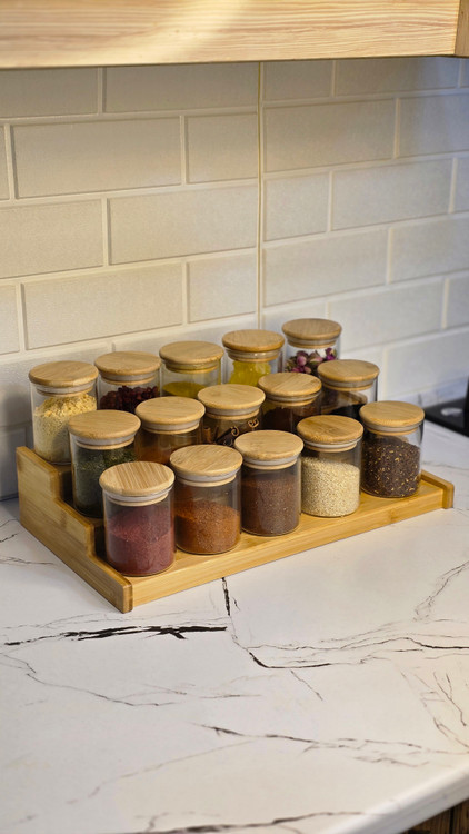پاسماوری شیشه‌ای درب چوبی با استند بامبو
