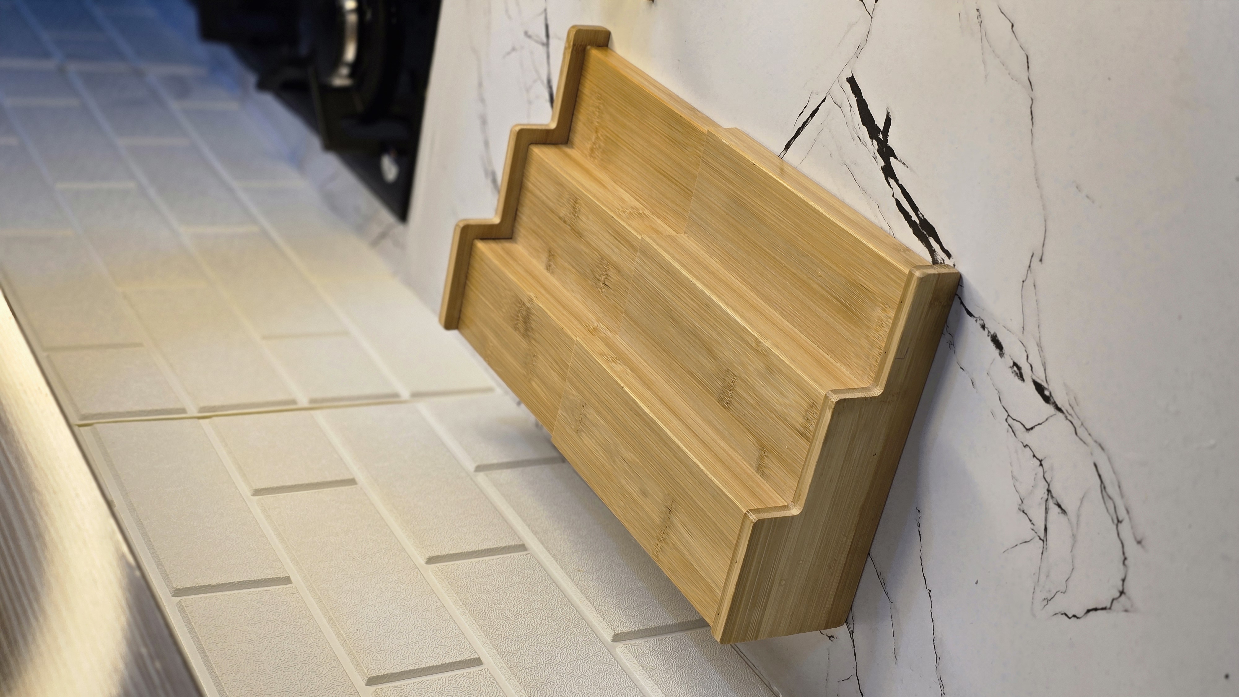 جاسازها و دربهای چوبی با کیفیت بالا، هماهنگی چشمنوازی با استند بامبو ایجاد کرده و جلوهای کاملاً طبیعی و لوکس به محیط میبخشند.