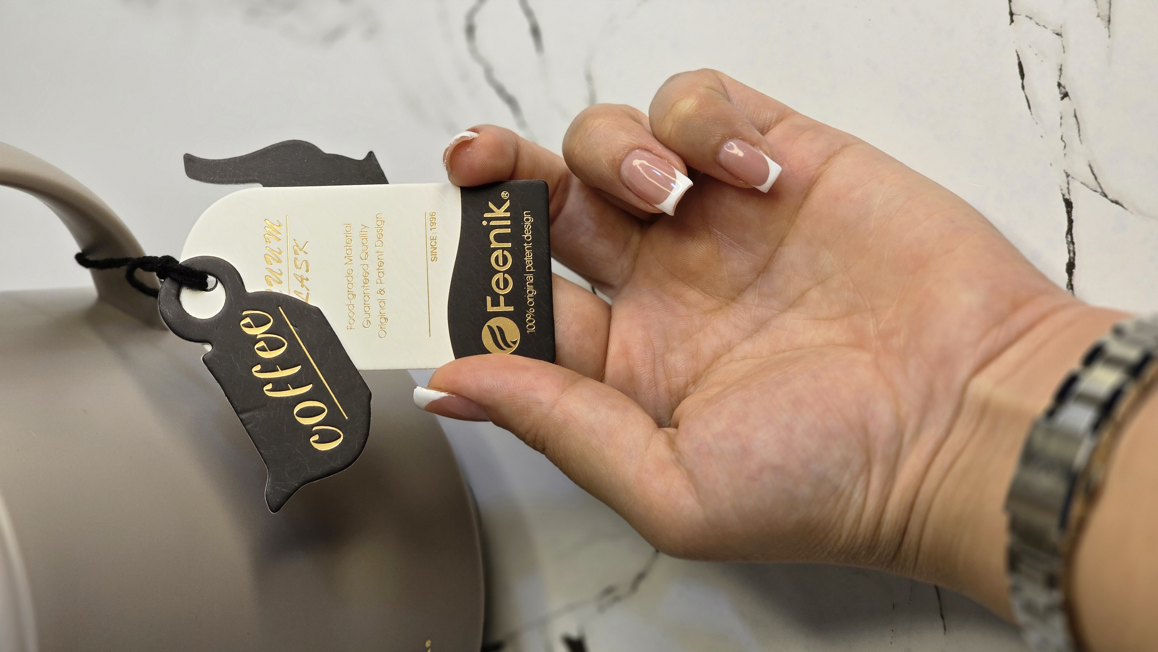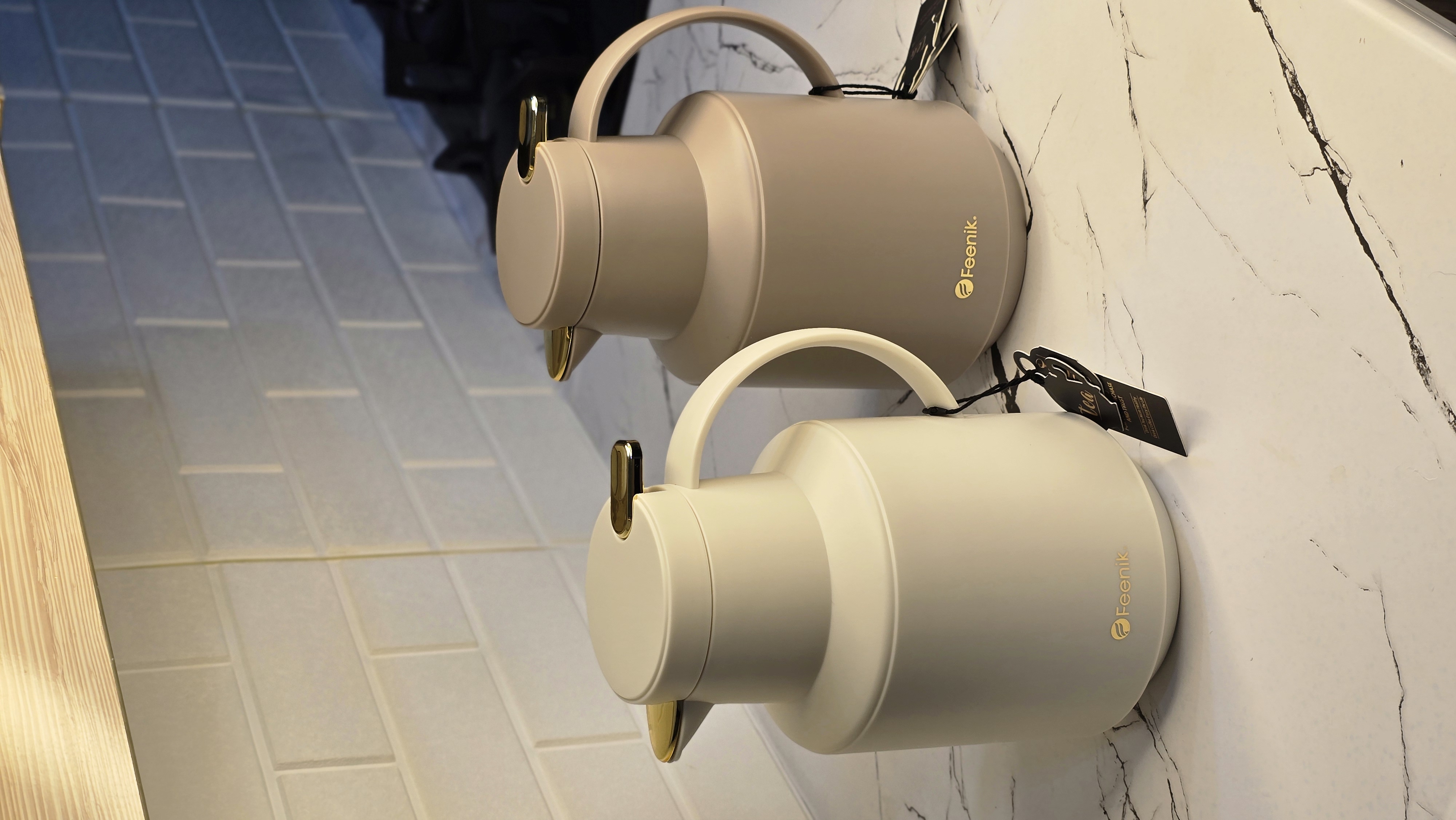 فلاسکهای شیک و مدرن Feenik با طراحی مینیمال و کیفیت ساخت بالا، یک انتخاب ایدهآل برای خانه، محل کار، دفتر، سفر و مهمانیها هستند. این فلاسک با ظاهر مات و شیک همراه با جزئیات طلایی، جلوهای لوکس و جذاب به میز پذیرایی شما میبخشد.