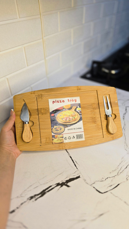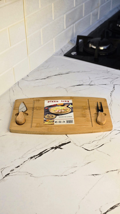 سینی سرو بامبو به همراه کارد و چنگال سرو یک محصول کاربردی و شیک برای سرو پیتزا، فینگر فود، کیک، شیرینی و انواع میانوعدههاست. این سینی از جنس چوب بامبو ساخته شده که علاوه بر زیبایی، دوام بالا و مقاومت خوبی در برابر رطوبت دارد. در دو طرف سینی، جایگاه اختصاصی برای چاقوی کاردکی و چنگال سرو طراحی شده تا همیشه ابزارهای لازم برای سرو حرفهای در دسترس باشد.