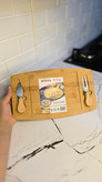سینی پیتزا چوبی به همراه کارد و چنگال سرو یک محصول کاربردی و شیک برای سرو پیتزا، فینگر فود، کیک، شیرینی و انواع میانوعدههاست. این سینی از جنس چوب بامبو ساخته شده که علاوه بر زیبایی، دوام بالا و مقاومت خوبی در برابر رطوبت دارد. در دو طرف سینی، جایگاه اختصاصی برای چاقوی کاردکی و چنگال سرو طراحی شده تا همیشه ابزارهای لازم برای سرو حرفهای در دسترس باشد.
