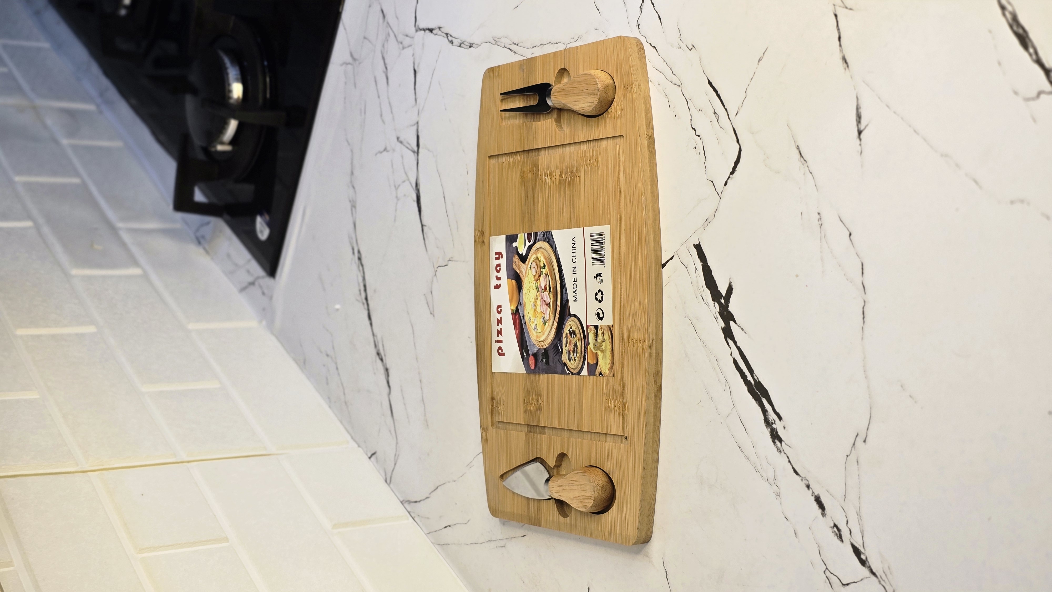 سینی پیتزا چوبی به همراه کارد و چنگال سرو یک محصول کاربردی و شیک برای سرو پیتزا، فینگر فود، کیک، شیرینی و انواع میانوعدههاست. این سینی از جنس چوب بامبو ساخته شده که علاوه بر زیبایی، دوام بالا و مقاومت خوبی در برابر رطوبت دارد. در دو طرف سینی، جایگاه اختصاصی برای چاقوی کاردکی و چنگال سرو طراحی شده تا همیشه ابزارهای لازم برای سرو حرفهای در دسترس باشد.